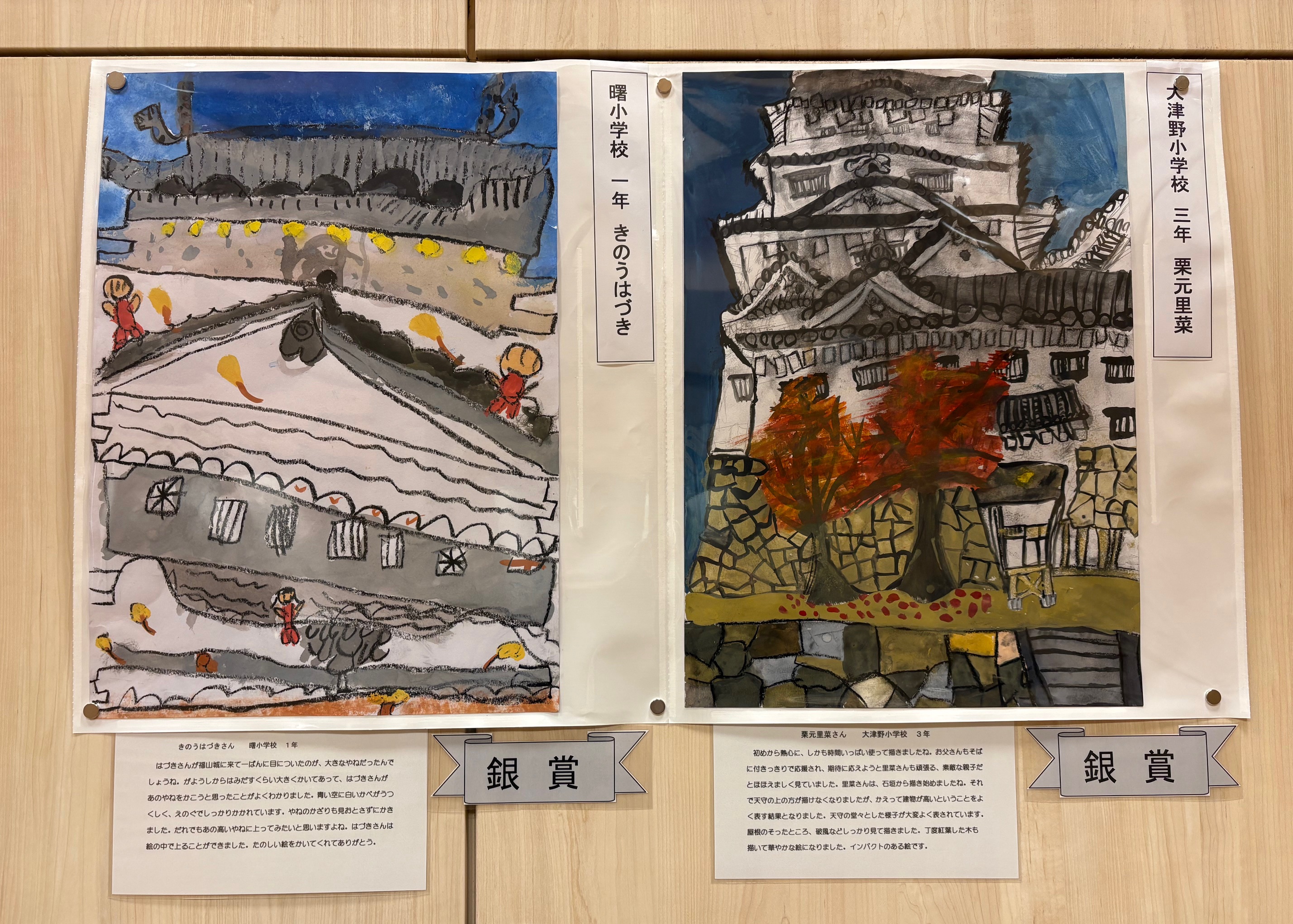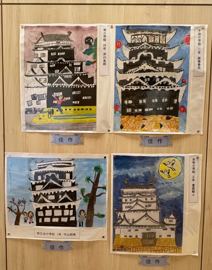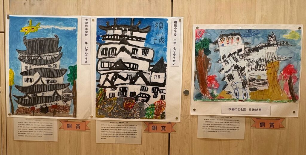 来館の際には、ぜひ足を止めてご覧いただき、子どもたちの自由な発想と豊かな感性で描かれた「福山城」をお楽しみください。